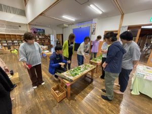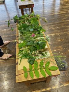見つけた植物を持ち寄り机に並べてみると、それだけでなんとも素敵な作品に!
