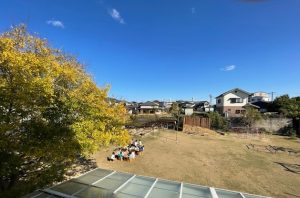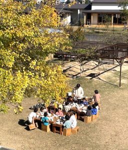 気持ちよい秋晴れの空の下で仲間と食べる給食は格別だったことでしょう。