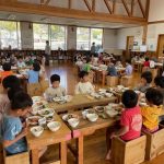2歳児さんから年長さんまで、みんなでテーブルを囲んでいただきました。