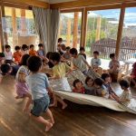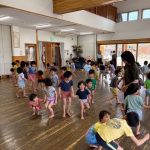 最後の日は、0歳児から年長児まで全員でお別れリズムを行いました。