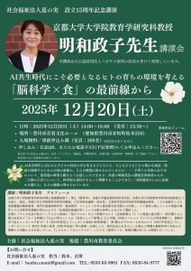 12月20日に京都大学大学院教育学研究科教授の明和政子先生の講演会を開催します!